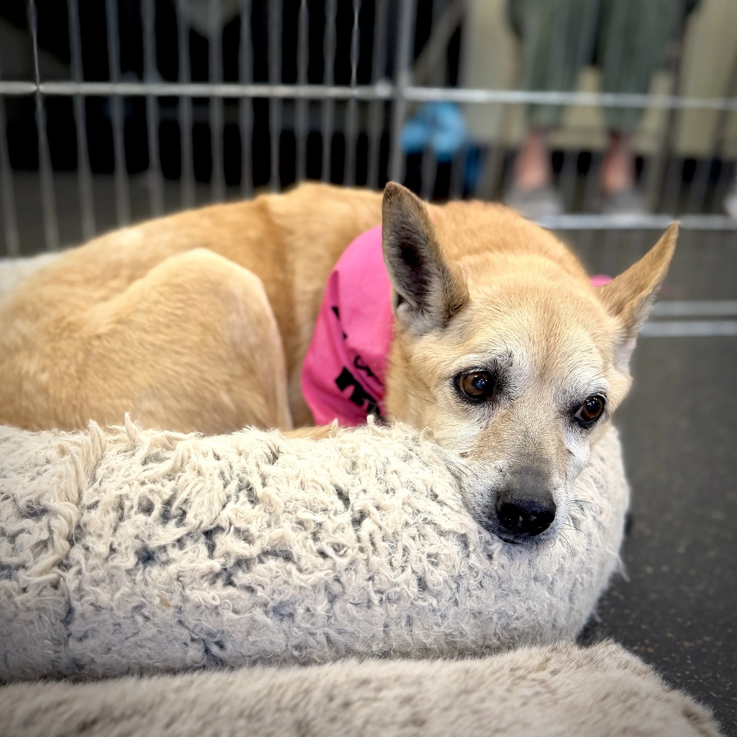 Charlotte is a senior blind Dachshund–Corgi mix who survived heartbreaking conditions in a hoarding situation. Despite the darkness she came from, Charlotte is one of the sweetest, most gentle souls you could ever meet. Her blindness hasn’t taken away her trust or her love for people — she simply leans in closer to feel it.