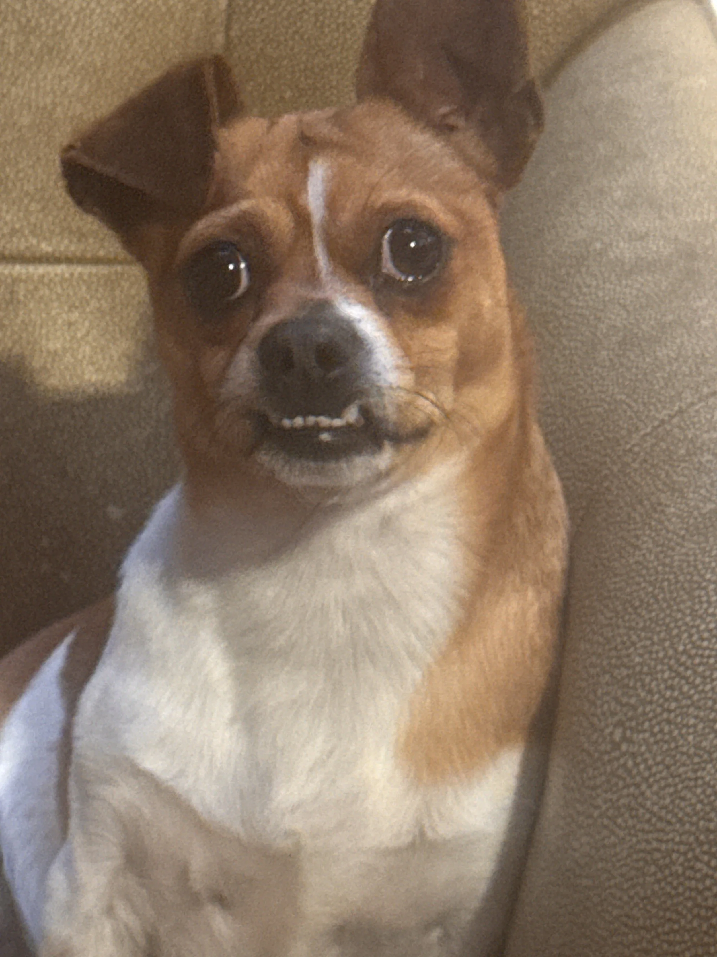 Prepare for a dose of pure joy! We'd like to introduce you to the one and only Picachu, a delightful two-year-old gentleman weighing in at a perfect 9 pounds of cuddly love. This adorable Jack Russell Shitzu mix is an absolute sweetheart, and his charming underbite just adds to his irresistible personality!