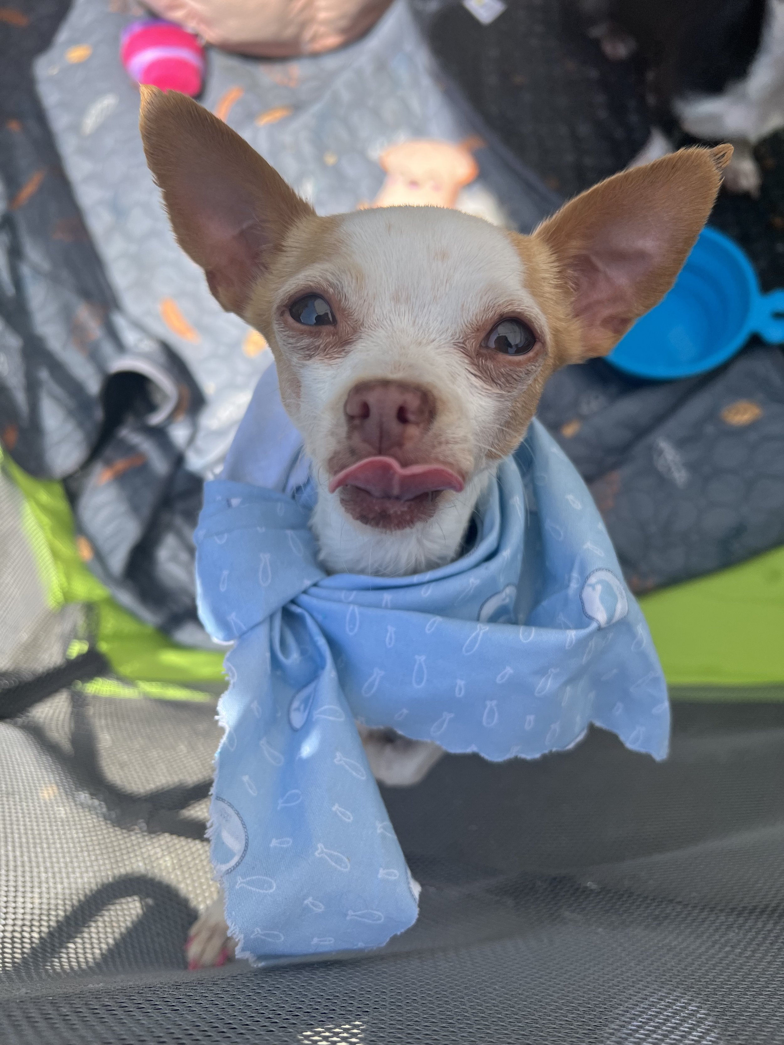 Our hearts break every time we think of Princess's past, but they swell with hope for her future. This tiny, 4-lb white and brown Chihuahua, a sweet senior estimated to be around 8 years old, has endured unimaginable hardship.